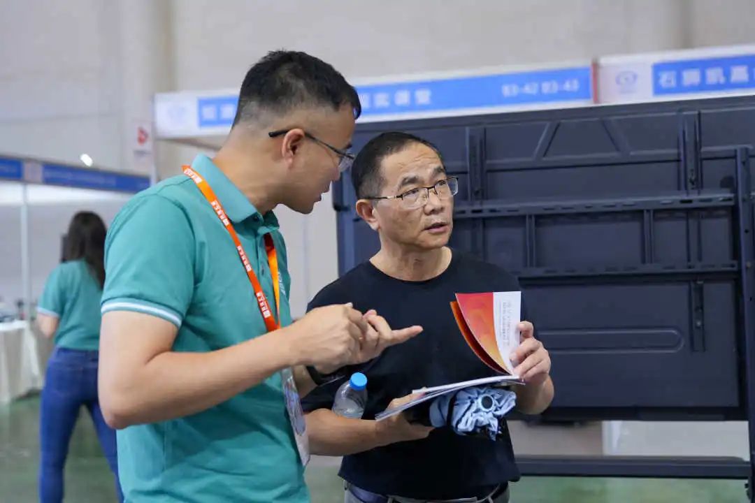 在展位前,贝德教育装备的工作人员热情地向观众介绍他们的产品和服务。他们详细解释了贝德教育装备的特点和优势,以及如何帮助学校提升教学效果和学生的学习体验。许多观展商及教育工作者对贝德的产品表达了浓厚的兴趣,并与工作人员进行了深入的交流和咨询。